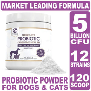 EXTRA STRENGTH PROBIOTICS POWDER - Our POWERFUL PET SPECIFIC FORMULA suitable for dogs and cats of all ages and sizes contains a market leading 5 BILLION CFU's (Colony Forming Units) per scoop and 12 BENEFICIAL LIVE BACTERIAL STRAINS including the essential ACIDOPHILUS bacteria. Dog Probiotics and Feline Probiotics for Cats.